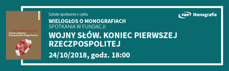 Wojny słów. Koniec Pierwszej Rzeczpospolitej to kolejne, już szóste spotkanie z cyklu Wielogłos o MONOGRAFIACH FNP organizowane przez Fundację na rzecz Nauki Polskiej. Spotkanie odbędzie się 24 października, w godz. 18:00-20:00, w siedzibie Fundacji w Warszawie.Pretekstem do spotkania będzie...